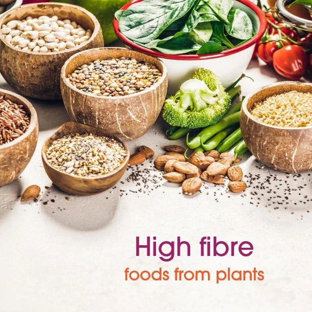 Fibre is derived from plants – specifically it is the parts of plants that we can’t breakdown and absorb from our food. It passes through the gut largely unchanged although some may be fermented by our gut bacteria.