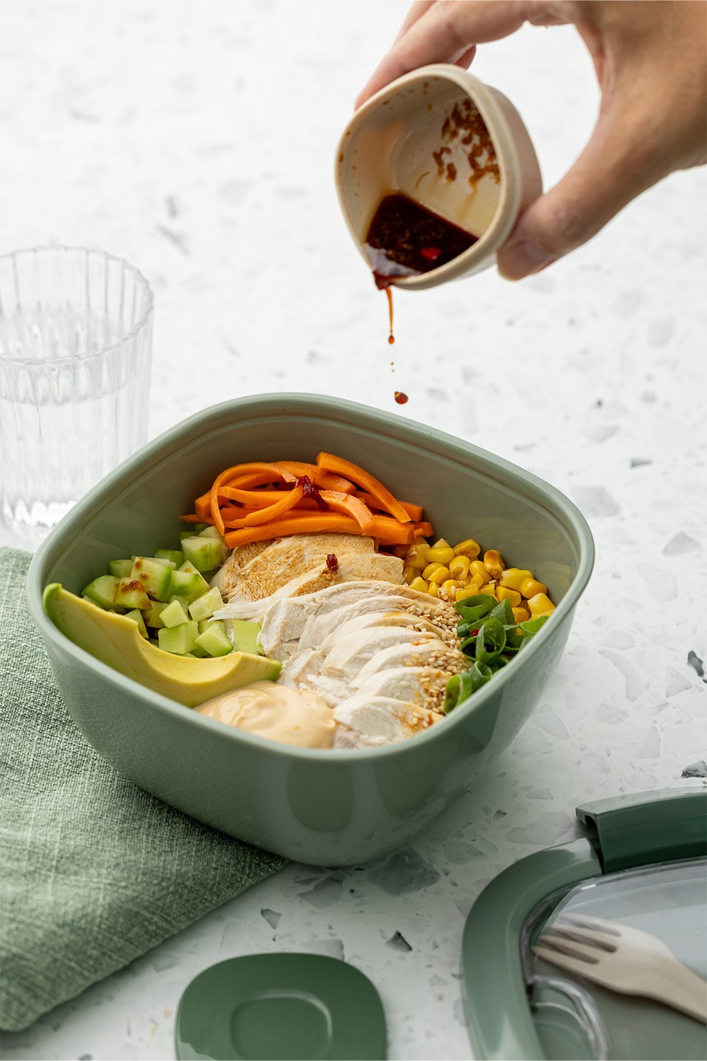 It provides a fully balanced meal with wholegrains, protein, colourful veggies and healthy fat from the small slice of avocado. The two sauces mean it doesn’t disappoint on flavour. Prep this on a Sunday night and be the envy of the lunchroom on Monday.